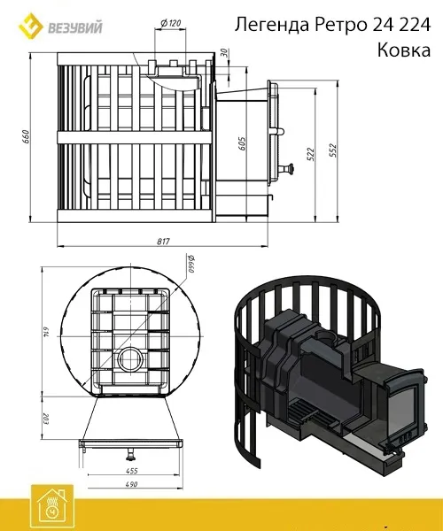 Банная печь Везувий Легенда Ретро 24 Ковка (224)
