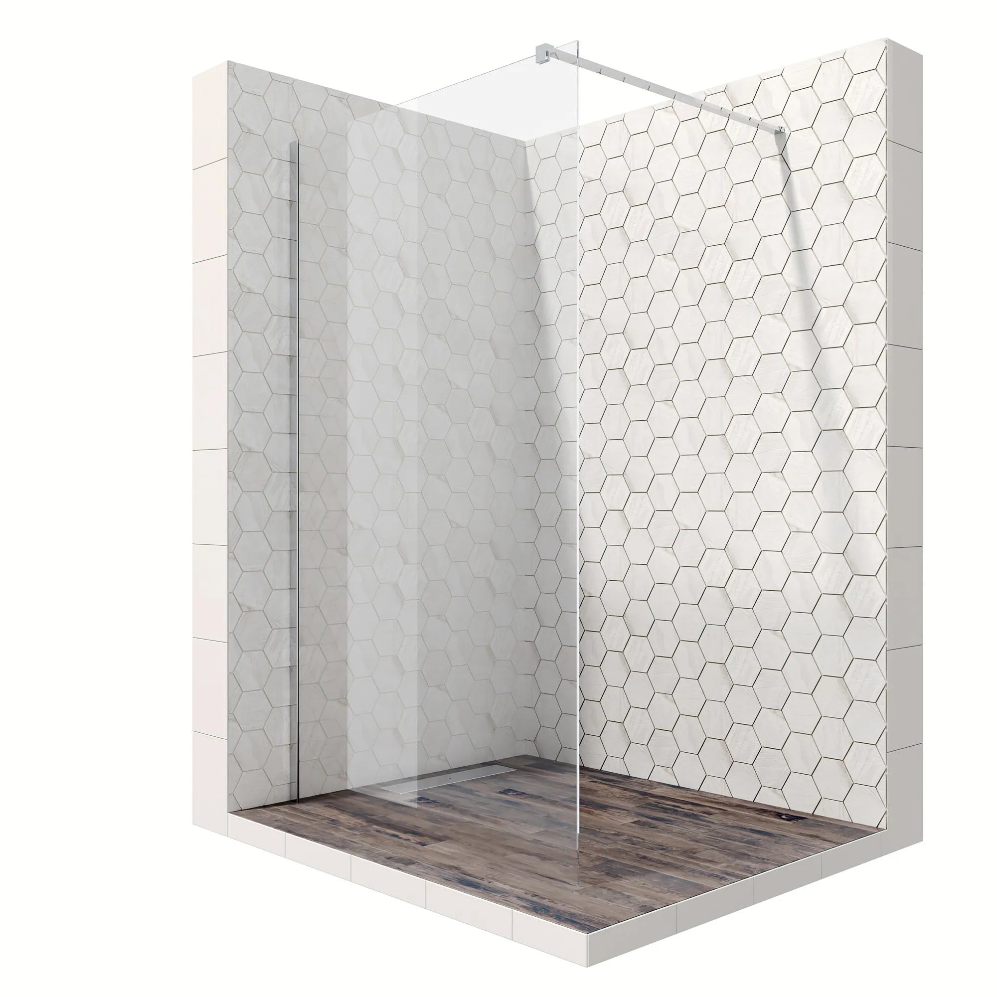 Душевое ограждение со свободным боковым входом и небольшой перегородкой по ширине